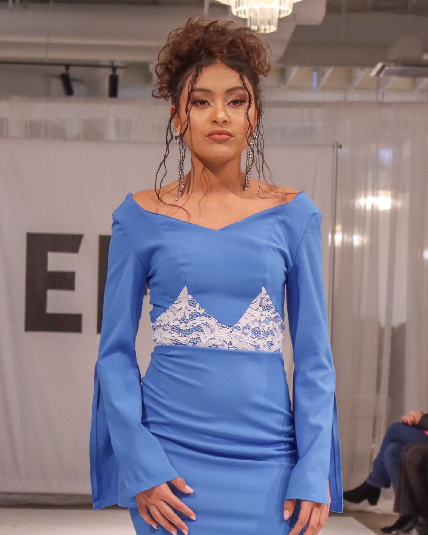 The Lacevine dress is a vision of grace and delicacy. Its serene blue fabric is beautifully complemented by intricate white lace detail that wraps softly around the waist, creating a look that’s both refined and timeless. The flowing bell sleeves, with their elegant slits, move with effortless charm, adding a touch of drama to the design.